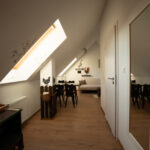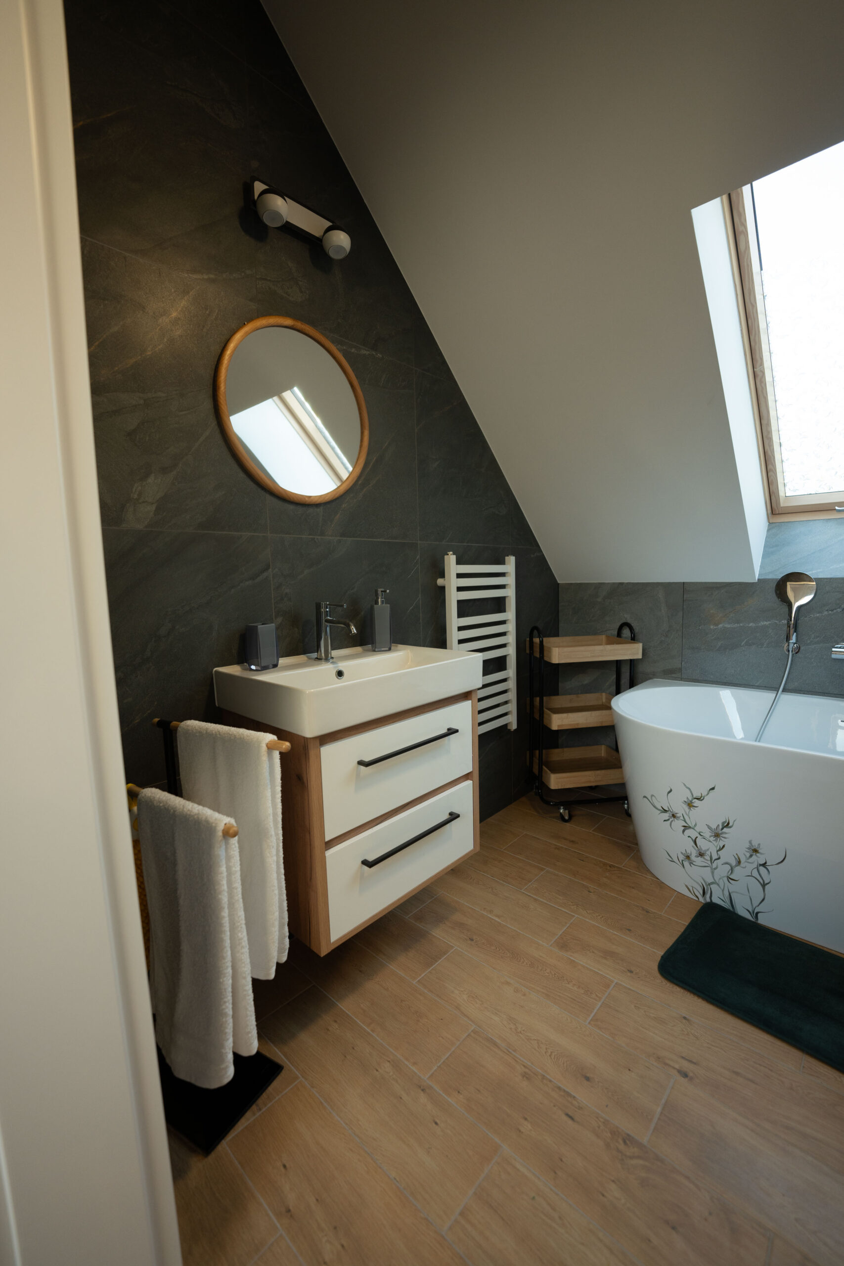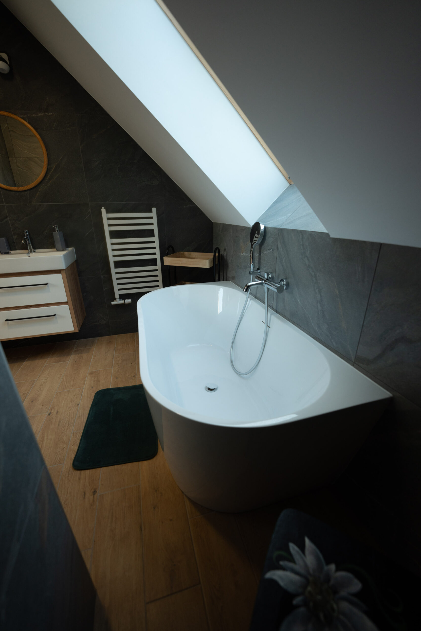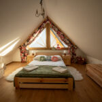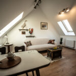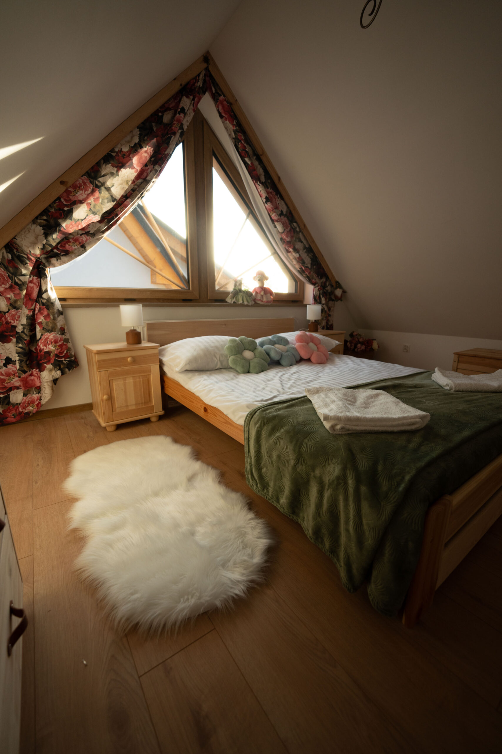 Poznaj Apartament „Kura” – najbardziej przestronny z naszych apartamentów, zaprojektowany z myślą o komforcie większych rodzin oraz grup przyjaciół. Stylowe, artystyczne wnętrze łączy nowoczesność z rustykalnym urokiem poddasza, tworząc niepowtarzalną atmosferę.