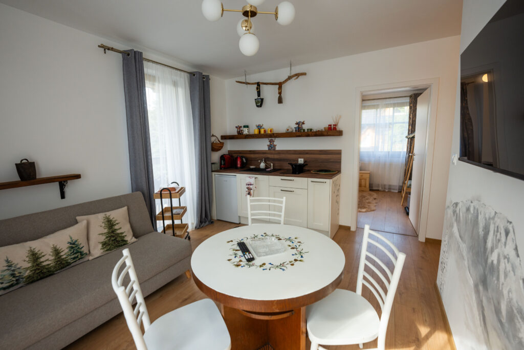 Przytulny apartament z balkonami, salonem, sypialnią i ręcznie malowanym Giewontem